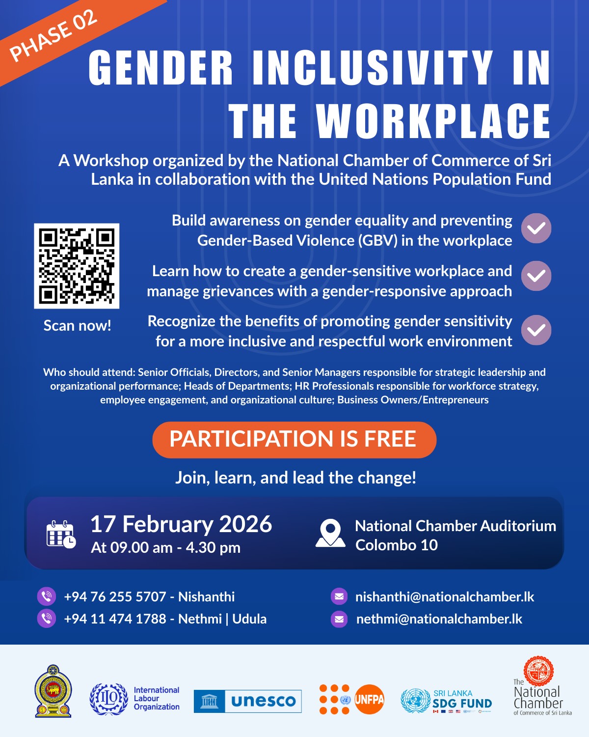 The National Chamber of Commerce of Sri Lanka (NCCSL), in partnership with the United Nations Population Fund (UNFPA), is bringing you another session of our the-day workshop on Gender...