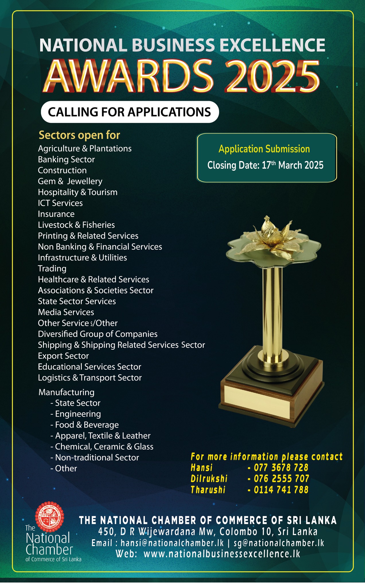 Registration:- Please use the below link or attached reply form and return to nishanthi@nationalchamber.lk; services@nationalchamber.lk to register. Link : https://forms.gle/Cb1ZhFsXh7zUDjf46