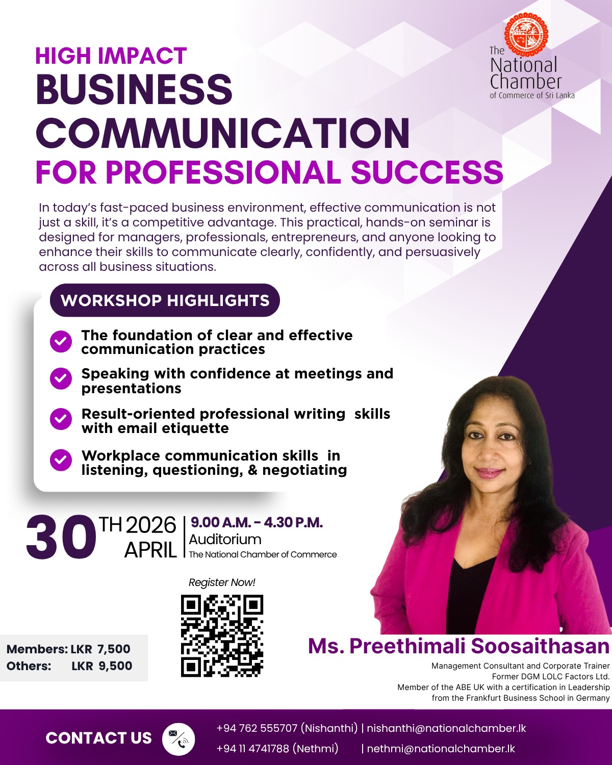 Registration:- Please use the below link or attached reply form and return to nishanthi@nationalchamber.lk; nethmi@nationalchamber.lk to register. Registration Link: https://forms.gle/JaPvw2PXaa1TdfEt9